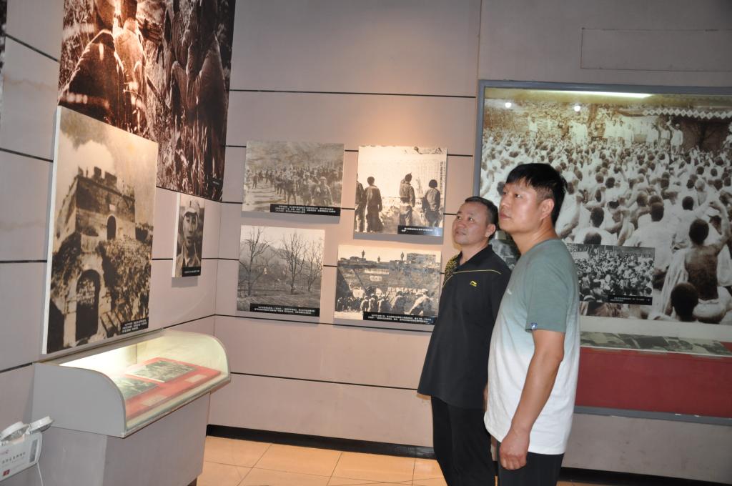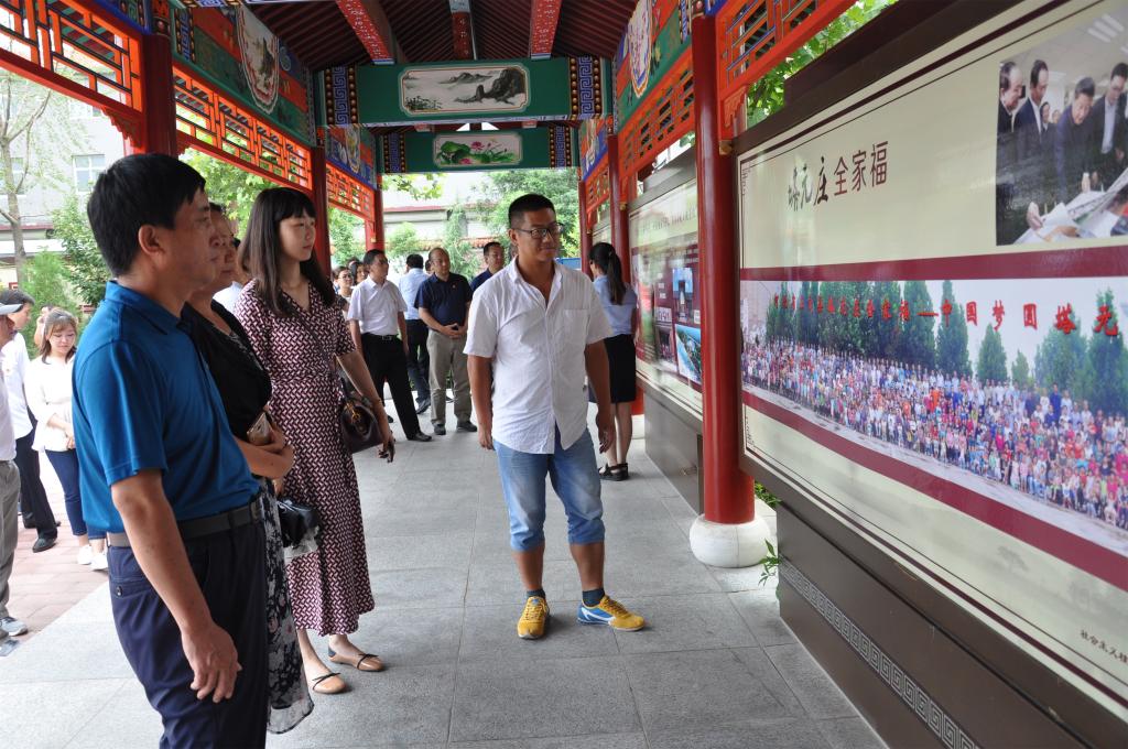 副经理张建林与大家参观塔元庄村史展览回廊