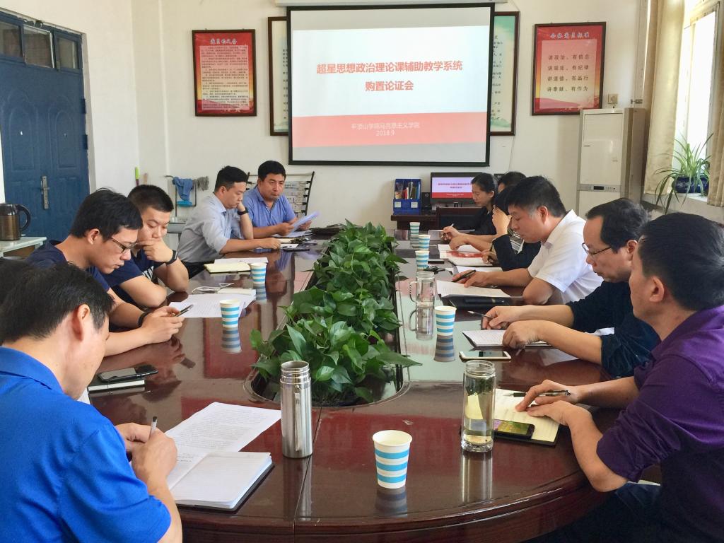 9月21日下午,谈球吧召开“超星思想政治理论课辅助教学系统购置论证会”,学校实验室管理中心主任樊爱京、教务处副处长史玉珍、财务处副处长李超贤、校工会张玉红老师应邀出席论证会。公司党总支书记李效武主持论证会,谈球吧副经理张建林、教师代表和超星公司相关负责人等出席会议。