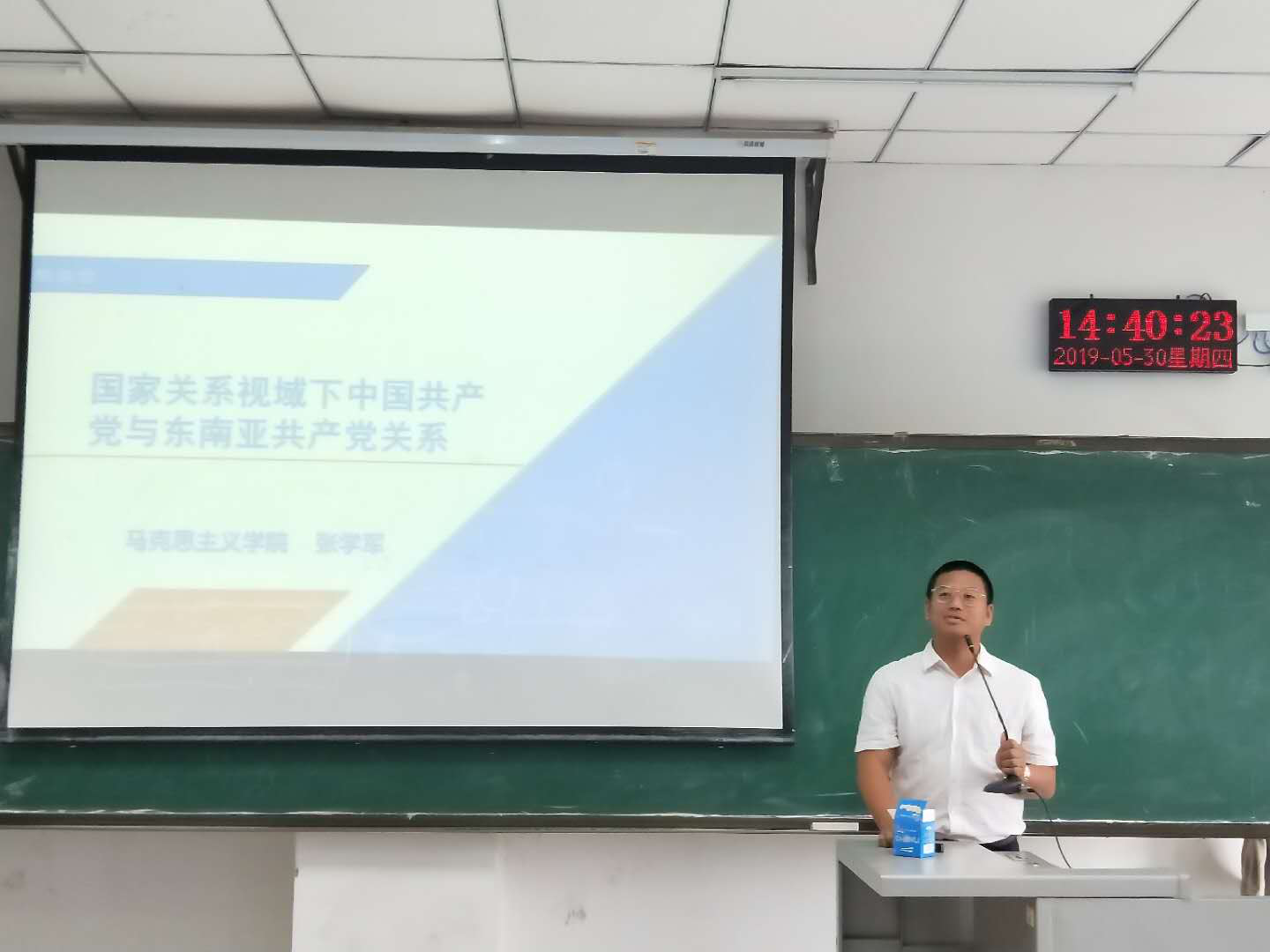 5月30日下午,谈球吧张学军博士在图书馆201教室为全校师生带来了题为《国家关系视域下中国共产党与东南亚共产党关系》的专题学术讲座。本次讲座是谈球吧体育“博士论坛”系列讲座第13讲,谈球吧全体教师和全校员工150多人到场聆听。