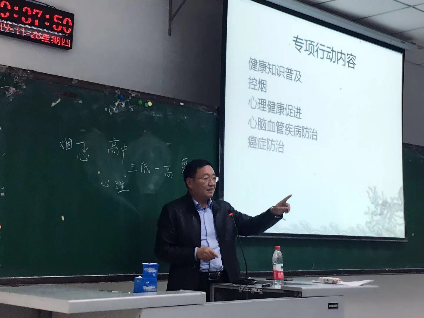 方居正结合自己的本职工作和丰富经验,紧紧围绕《健康中国行动(2019-2030)》这个主题,从“健康知识普及”、“控烟”、“心理健康促进”、“心脑血管疾病防治”、“癌症防治”等方面进行讲述,让同学们对健康中国专项行动有了基本的认识和了解。方居正说,以心脑血管疾病、癌症、慢性呼吸系统疾病、糖尿病等为代表的慢性病导致的死亡人数占到了总死亡人数的88%,由此导致的疾病负担占总疾病负担的70%以上,严重危害人民健康。健康中国行动(2019-2030),我国将对这些疾病展开防治行动。