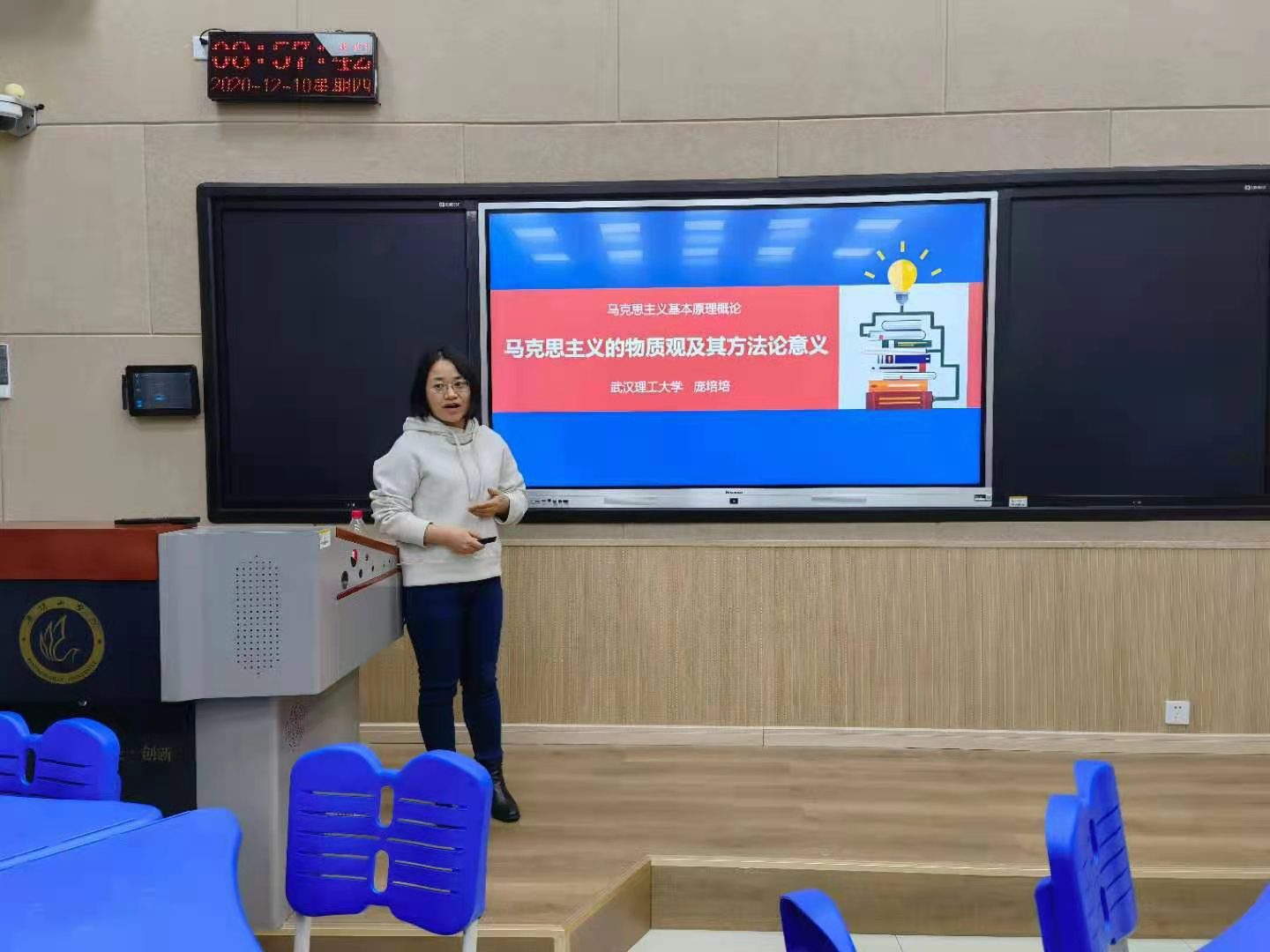 12月10日,特邀武汉理工大学“第四届全国青年教师教学竞赛思政组二等奖”、“ 湖北省第六届高校青年教师教学竞赛思政组一等奖”获得者许瑶老师和“教育部全国高校思想政治理论课教学能手”庞培培老师在L207教室进行了精彩的示范课展示。